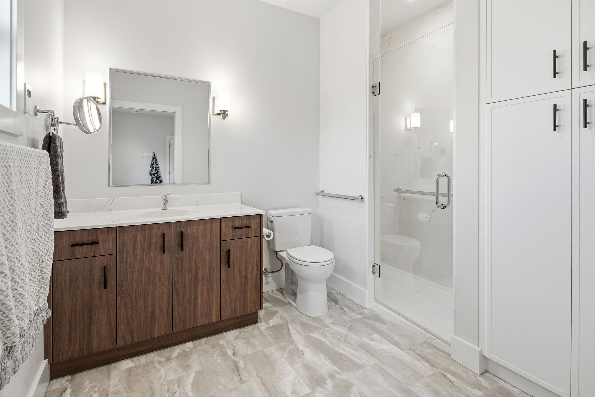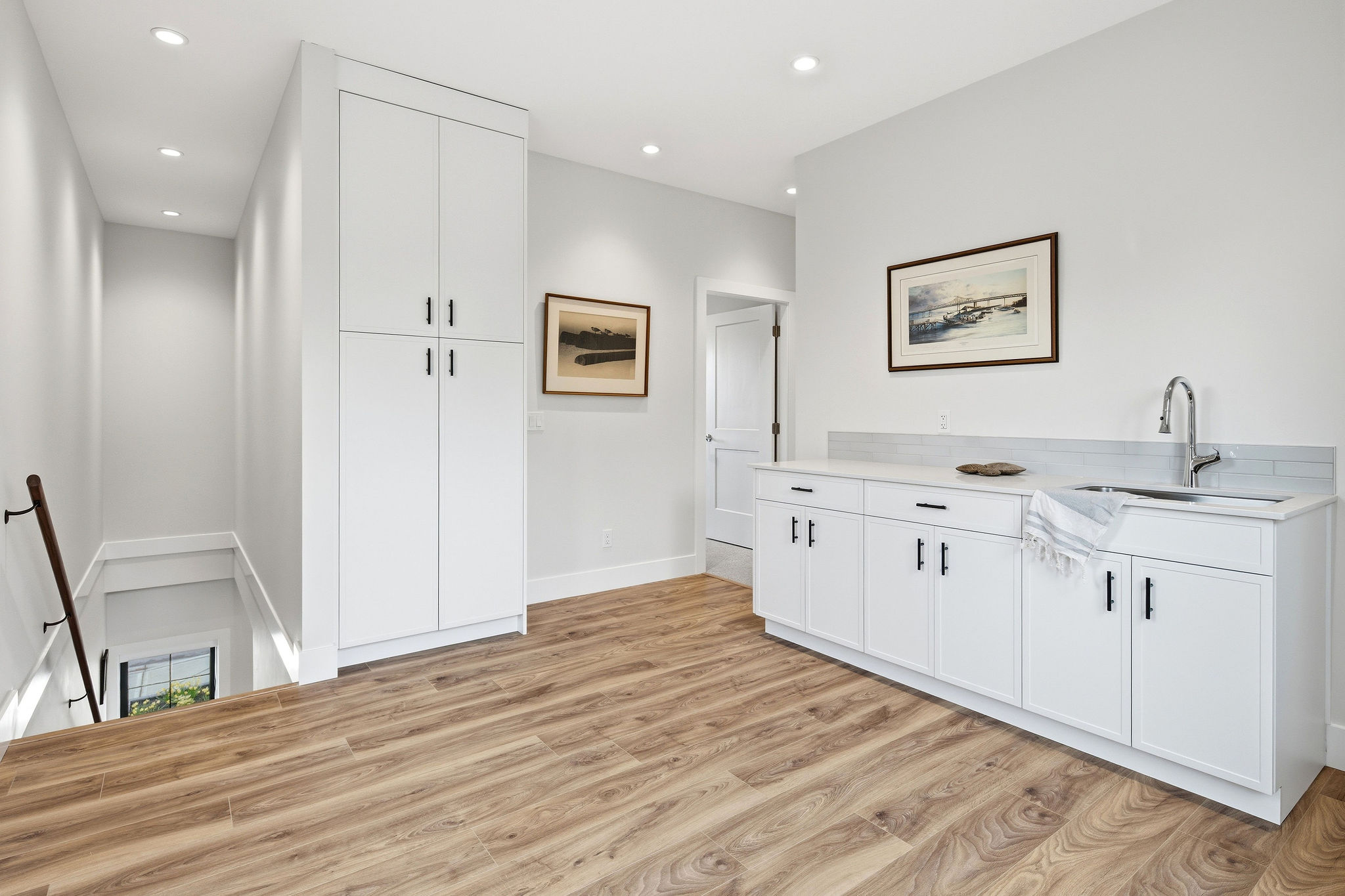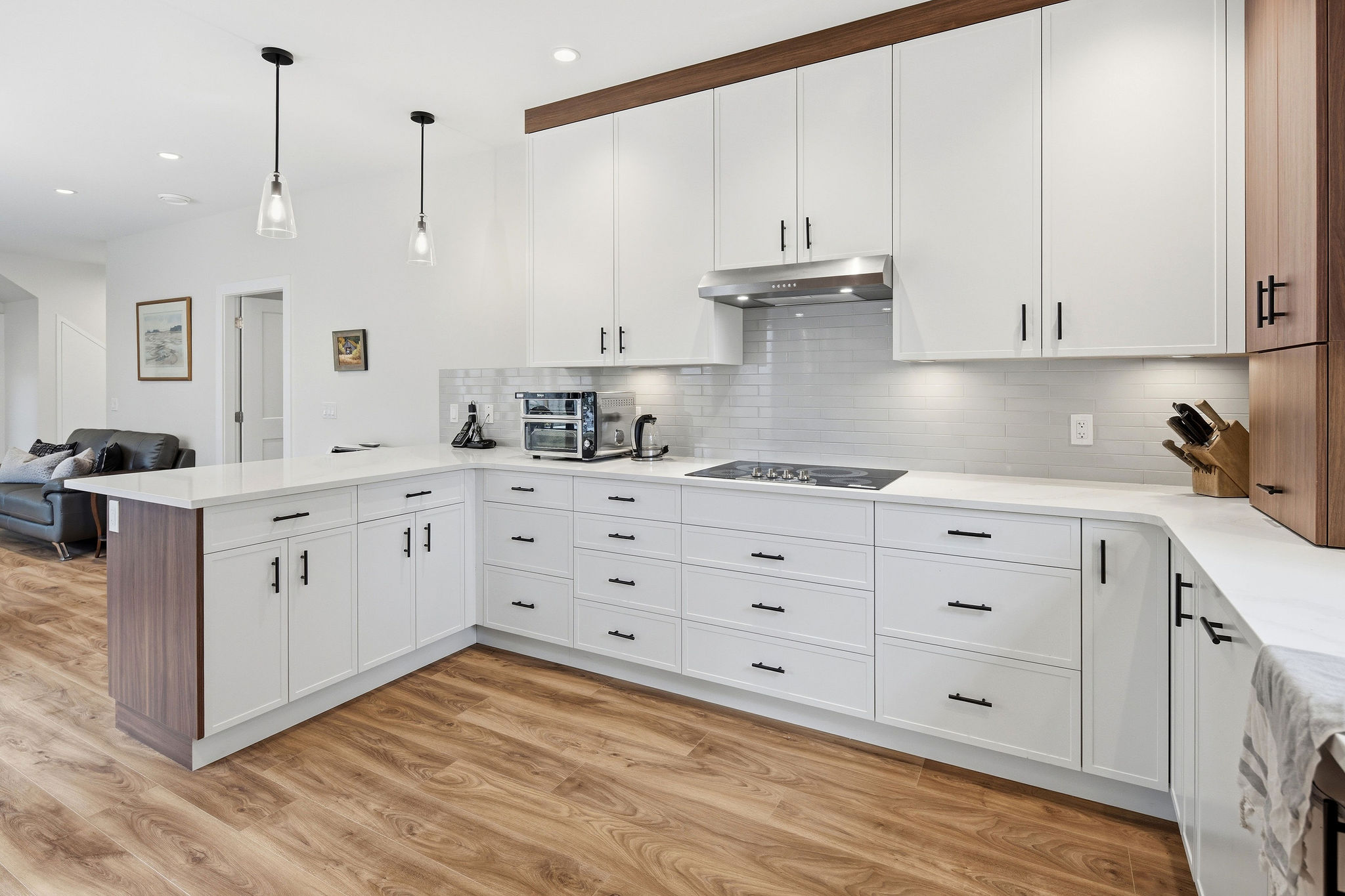 Designed for aging-in-place, the main floor is fully accessible with intuitive circulation and functional living spaces that support long-term comfort and independence. The open-concept layout connects the kitchen, living, and multi-purpose areas, showcasing custom cabinetry, modern finishes, and detailed craftsmanship throughout.